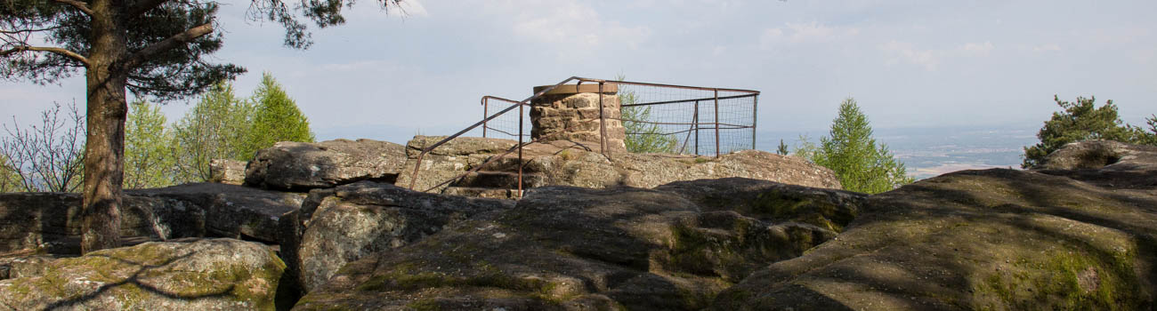 Folgt man vom Beckenfels aus dem Wanderweg mit dem gelben Kreuz entlang der Mauer, erreicht man nach 1,5 km das südliche Ende des Odilienbergs, den Maennelstein. Ein etwas kürzerer Weg führt über die kleine Erhebung „La Bloss“ auch auf direktem Weg dorthin (Markierung rotes Rechteck). Allerdings ist der Weg entlang der Mauer atmosphärisch reizvoller und eignet sich gut um die Qualitäten der Mauer selbst, sowie die Atmosphäre außerhalb und innerhalb der Mauer zu erleben. Er bietet zudem beim Mundelfels einen weiteren schönen Ausblick auf die Rheinebene.